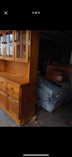 It looks like the panels on your hutch are quite compromised. Just looking at the way the material has disintegrated, I have to ask — is it pine, or could it actually be chipboard? I'd be a little surprised to see chipboard in this style of unit unless it's a more modern piece, but the way the damage looks certainly hints at that possibility.