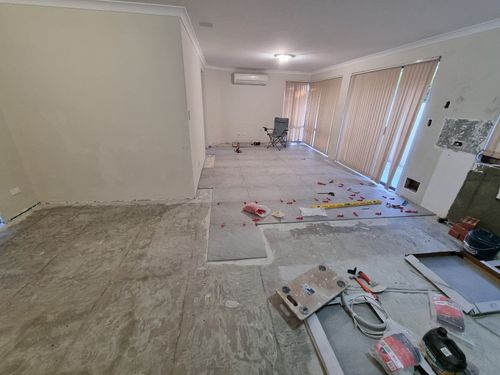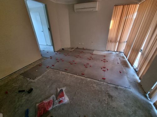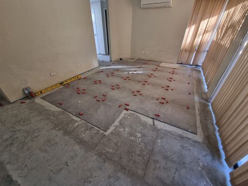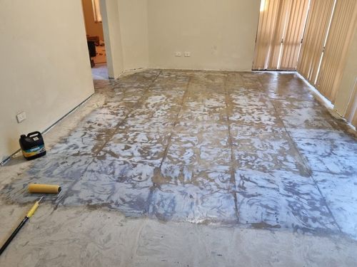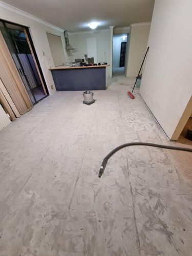 I have (finally) finished lifting up all of the old ceramic tiles (Hallway, Kitchen, Dining, Living, and Laundry) on concrete slab flooring and has tried my best to remove the tile mortar by using a grinding cup with an angle grinder.