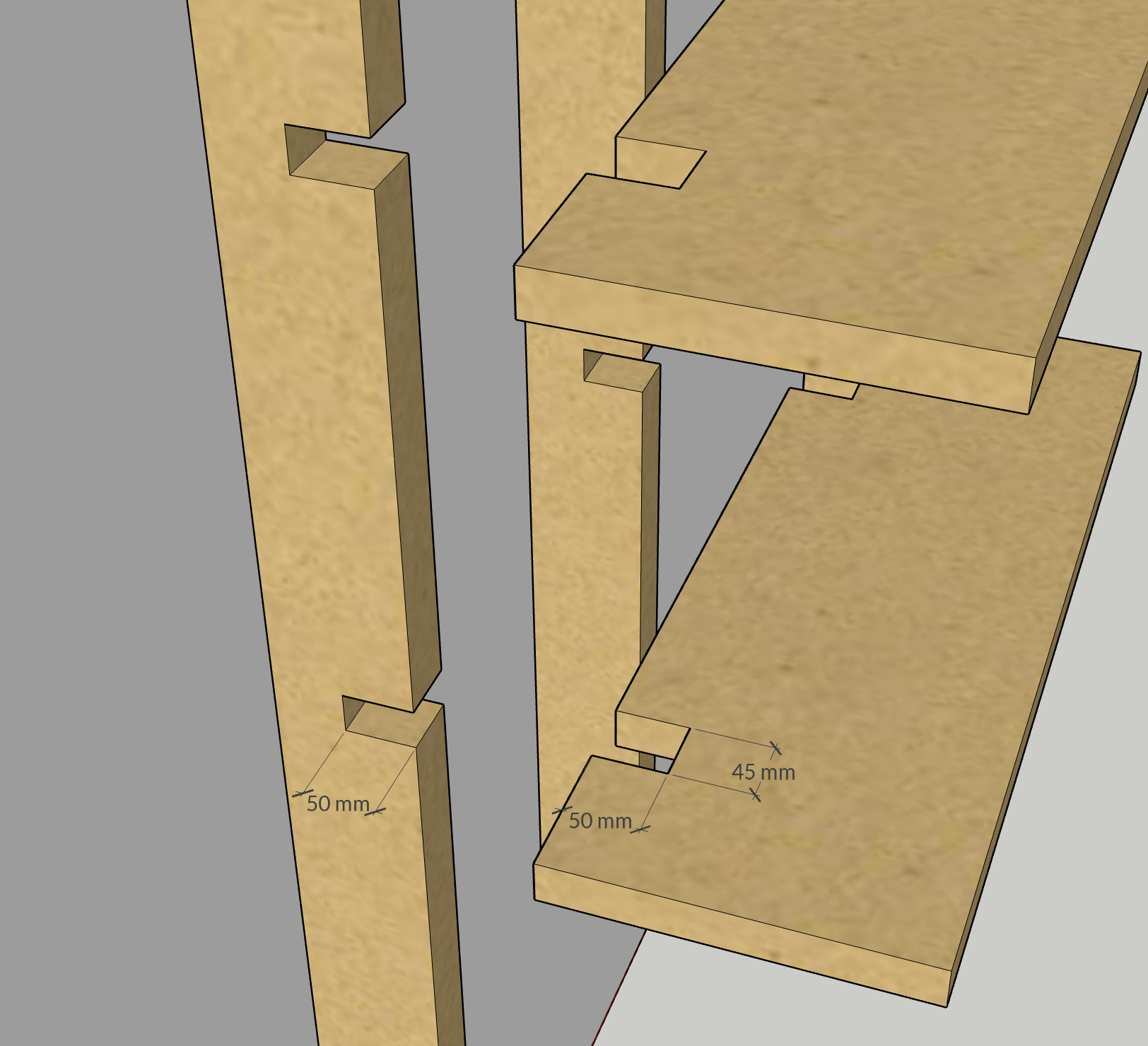 Having the verticals notched in this way will mean the shelves are actually sitting on the verticals, which is a far stronger way of supporting them. It would also mean the screws are hidden behind the shelves.