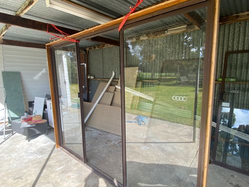 It's great that you've picked up a great recycling project. Manufacturers use to finish windows and aluminum sliding doors in gloss. It was the opinion back then that a gloss finish would be easier to clean and maintain. In this instance, you have total freedom to choose the finish that you want. You can match the finish of the windows of your house, or you can have it stand alone with its own unique satin finish.