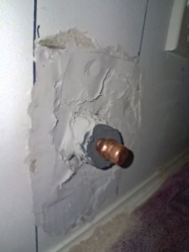 :smile: Think I found your next project. When you say patch, you are wanting to mortar around the pipe to be smooth with your wall? With the water pipe still poking out?