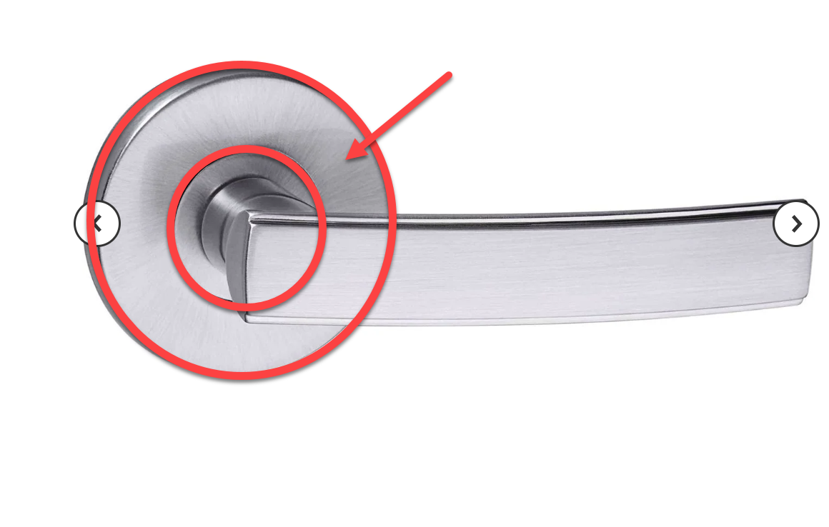 To remove a door handle, you'll have to start by removing the cover plate at the base of the handle. This is usually possible by rotating the cover plate and gently pulling. If it is stuck, then a small flathead screwdriver acting as a lever can help to get it off.