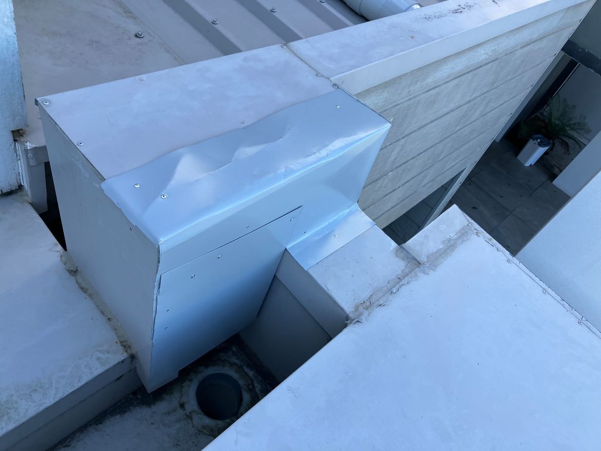When you're confident that the patch is in the right shape, do one more test fit and drill pilot holes for the blind rivets. Apply the roof and gutter seal and fix it in place with the blind rivets. I've placed a sketch below to give you an idea of what it needs to look like. Please have a look and tell me what you think.