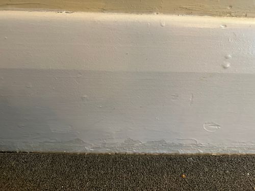 In order to repair it, the uneven parts must be sanded down. I recommend using 240 grit sandpaper in combination with a Paint Partner Cork Sanding Block. To prevent that patched repair look, I recommend repainting the entire skirting board.