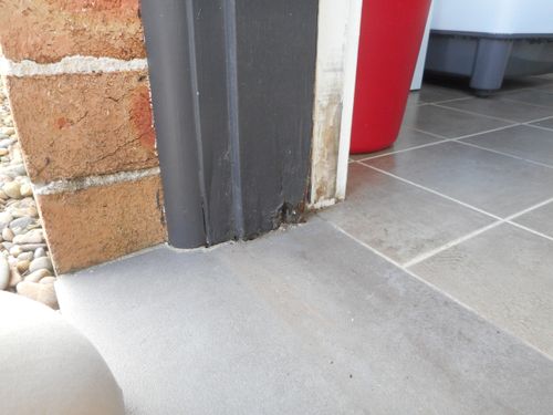 With regard to the tiles, they are horizontal from outside the screen door to the centre of the laundry door. I understand what you are saying with regard to the weather seal. There was actually an existing weather seal on the laundry door. It was actually when the plastic stopper mechanism dropper off the door jamb that I realised that I had a wood rot problem. I will definitely replace the weather seal once I have repaired the damage.