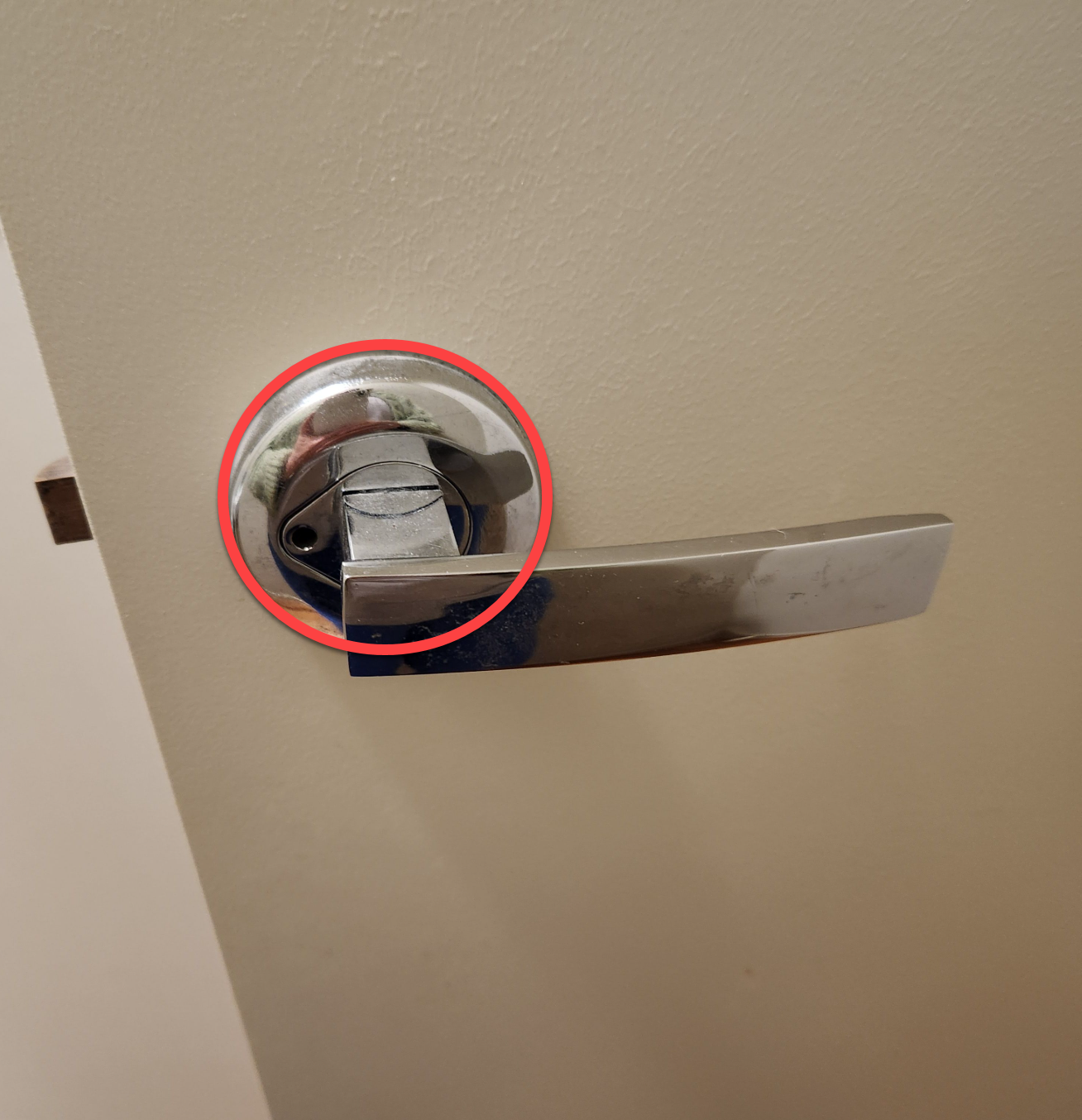 Wondering if you anyone can help me fix this loose powder room door handle? I'm scared that it will breakdown & lock me in!