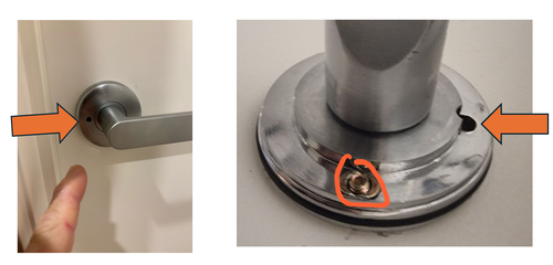 the door handle is loose and locked from inside. I removed the face plate but unfortunately the screw heads are on the other side so I don't have access to unscrew it.