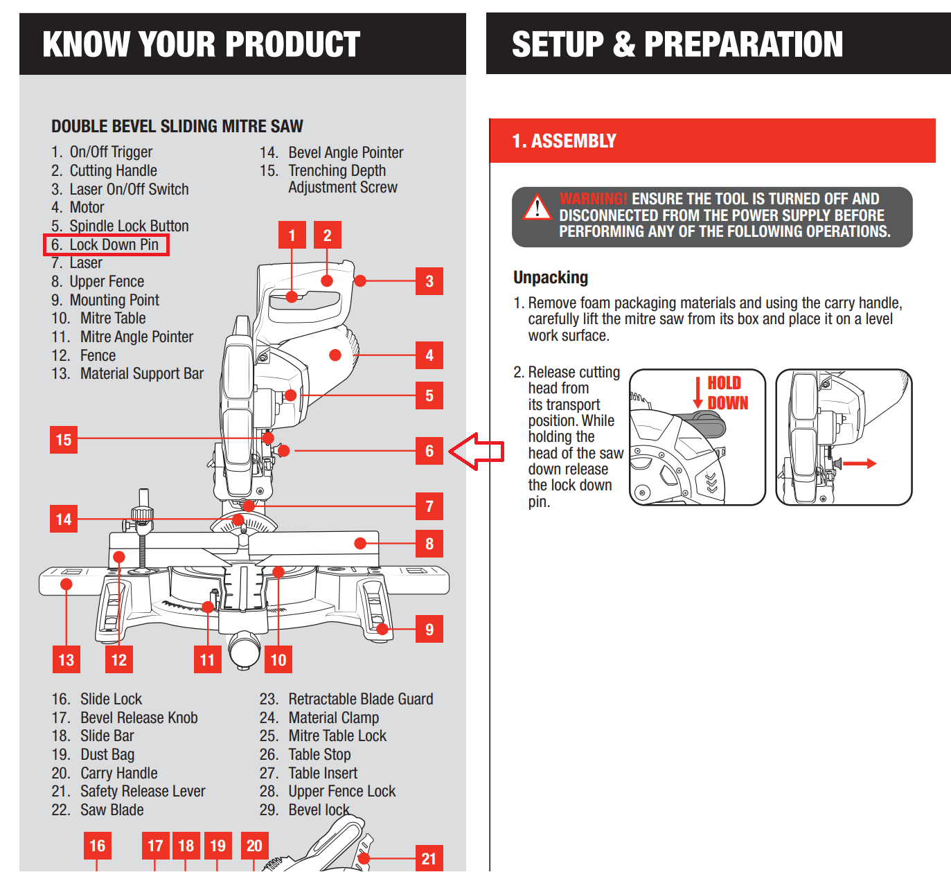 Hi got a new mitre saw which is working well in every respect except I cant unlock the head to let it lift? The instructions have nothing in them mentioning it either. There's a screw knob where I would expect to loosen it, but nope still locked. Appreciate any help here. Might just be me being night blind!