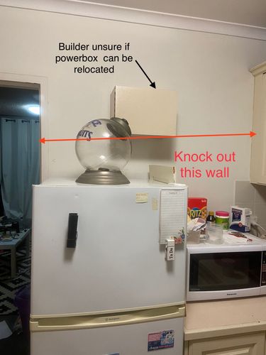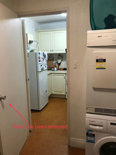 - Move fridge to laundry? Architect has confirmed that the wall to the left of the laundry doorway could be cut back to where the piping runs (see pics).