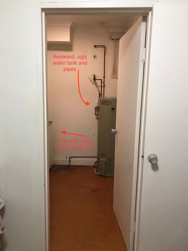 - Wall off the hot water tank? It’s so awkward and hideous!!!