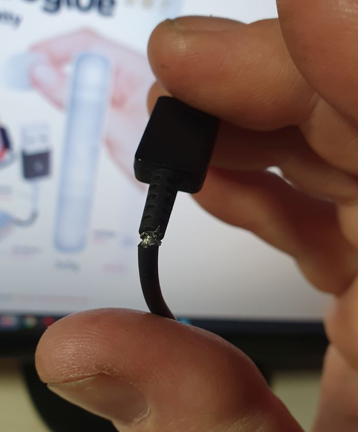 My wife laughed at my efforts to repair the cord with this mouldable plastic saying for a dollar more I could have bought a new cable. Probably right and my result looks aesthetically poor - I failed plastiscine class in Kindergarten. I noticed it also marks things easy - note the paper background.
