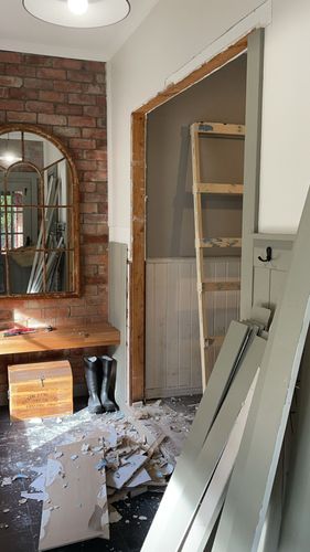 We chose French Green by porters paint as it really stands out against the brick work and originally had picked a fancy tile for the floor but it was way too busy in the little space and went with the simple Matt Black tile which really complements the texture and colouring l think. We finished this project in about three week ends and funny you ask about “ what would you do different “ we actually pulled it apart the weekend after as we wanted to swap the pocket door around for more light 😂so the opening was directly in front of the window 🙈you learn from the mistakes! We also built the bench seat from scrap left over timber and will pop up a post on how we did that too.