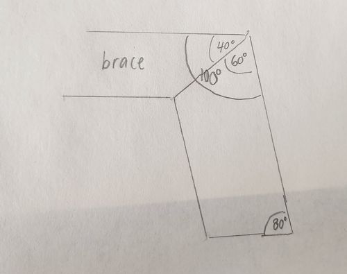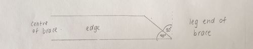 - brace pieces - cut 3 pieces on an angle of 30 degrees. Flipped the piece over then 90 degrees to make the edge grain stand up and cut the other end on an angle of 50 degrees. They are 115mm long. This was the hardest part, especially as I had limited material so I couldn't mess up too much.