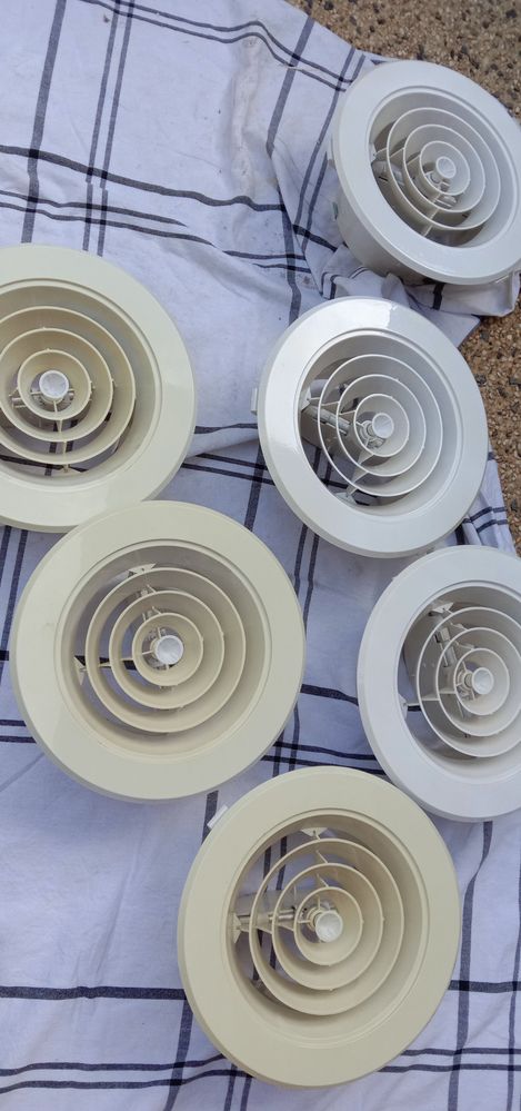 A very simply fix but proved to be effective. This had been on my mind for a very long time and I looked into chemical treatment and even replacing the vents, in the end I bought a can of gloss white spray paint and off I went. The hardest part was how to remove the vents from the ceiling, but once I worked that out it was incredibly quick and easy.