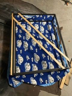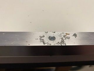Good little trick hammering wood into the hollow metal legs - I did the same thing on my small metal mancave bar frame, and screwed the bartop straight into those bits of wood to secure it, you did the same?