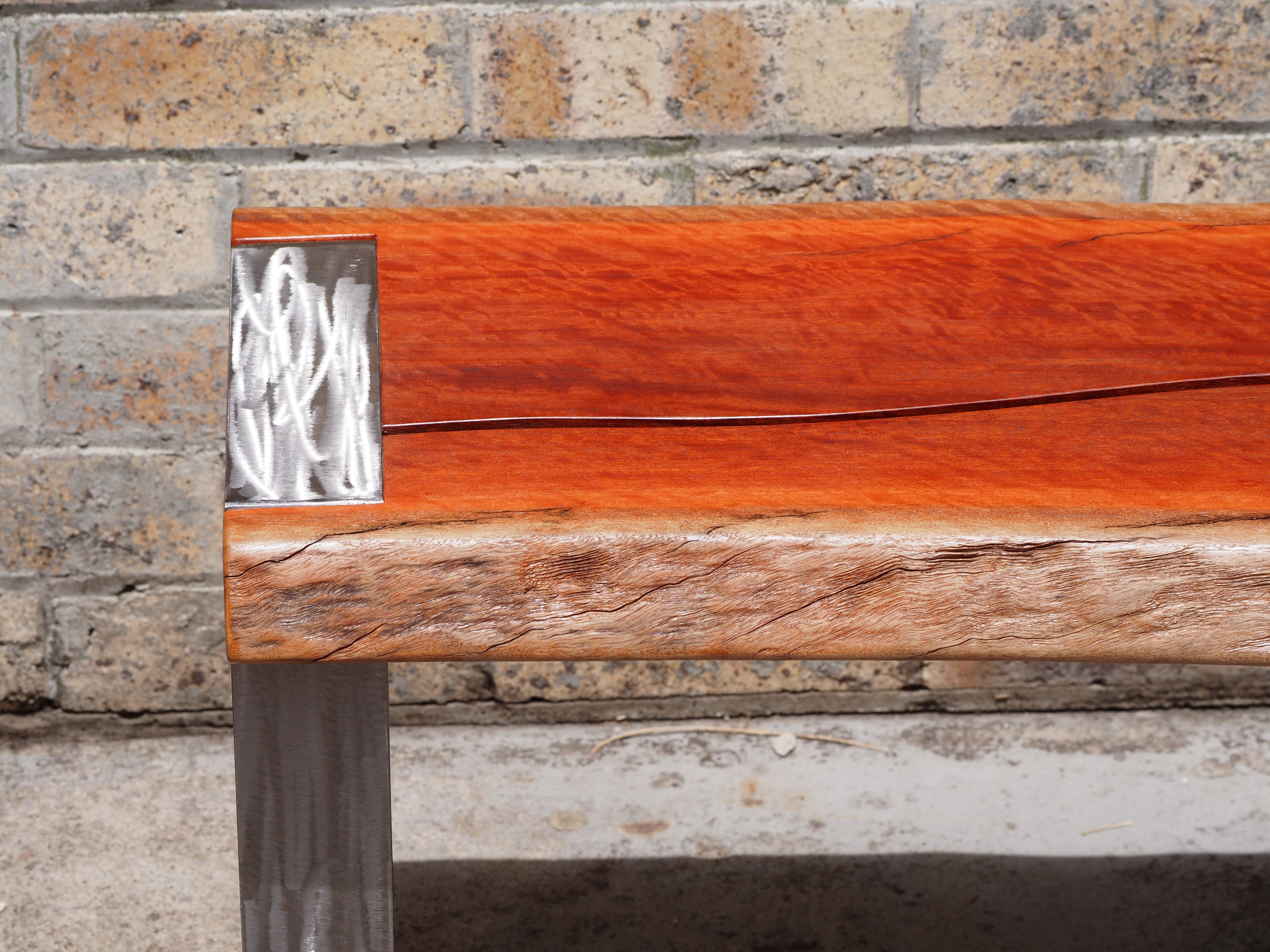We are working on a new furniture line using recycled timber, steel and glass. These are some of our prototypes. Here's a detailed photo.
