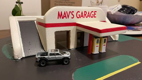 There are a number of issues with the finish, but overall I’m pretty happy with how ‘Mav’s Garage’ turned out. The main thing is that my grandson enjoys the garage.