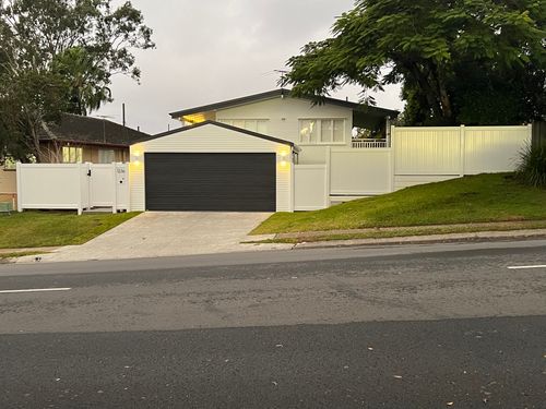 This is the final product, we are super happy with the results and it has completely changed the vibe of the house.   We also had new fences installed all around the perimeter with all fences being painted by ourselves with a trusty spray gun.  The roof was restored (professionally) which looks as good as new in black.  We filled in the path with screenings and painted the formwork to match the rest of the house.   Bunnings products used:  Screenings, woodland grey taubmans paint for form work, monument taubmans paint for fence, undercoat for fences, dropsheets for spray gun overspray.