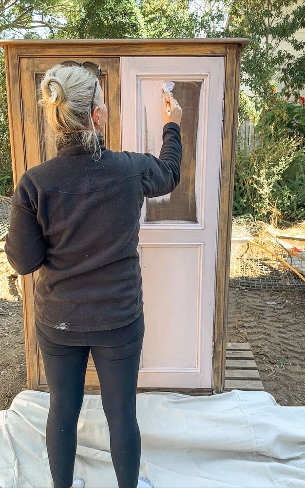 I applied 2 coats of chalk paint to the exterior of the cabinet and the door. I used a brush to apply but you could also use a small roller.
