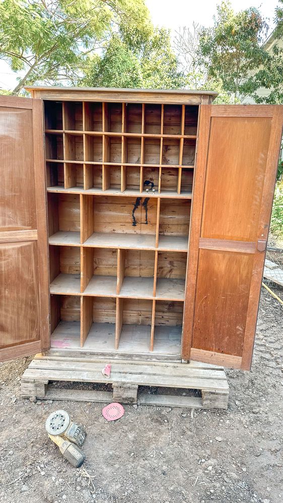 This amazing piece had been sitting under someones house for nearly 40 years. It had been her grandfathers wardrobe previously and she had plans for it but it never happened so they decided to find a new home! I couldn't believe my luck. I have recently opened a new business and this would be perfect for my candle supplies and how gorgeous is it.