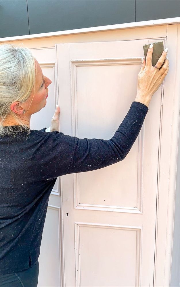This wardrobe was in need of a good sand, the varnish had bubbled and had left a rough textured finish which I wanted to smooth out. I ran a sanding block over the inside to smooth any wood.