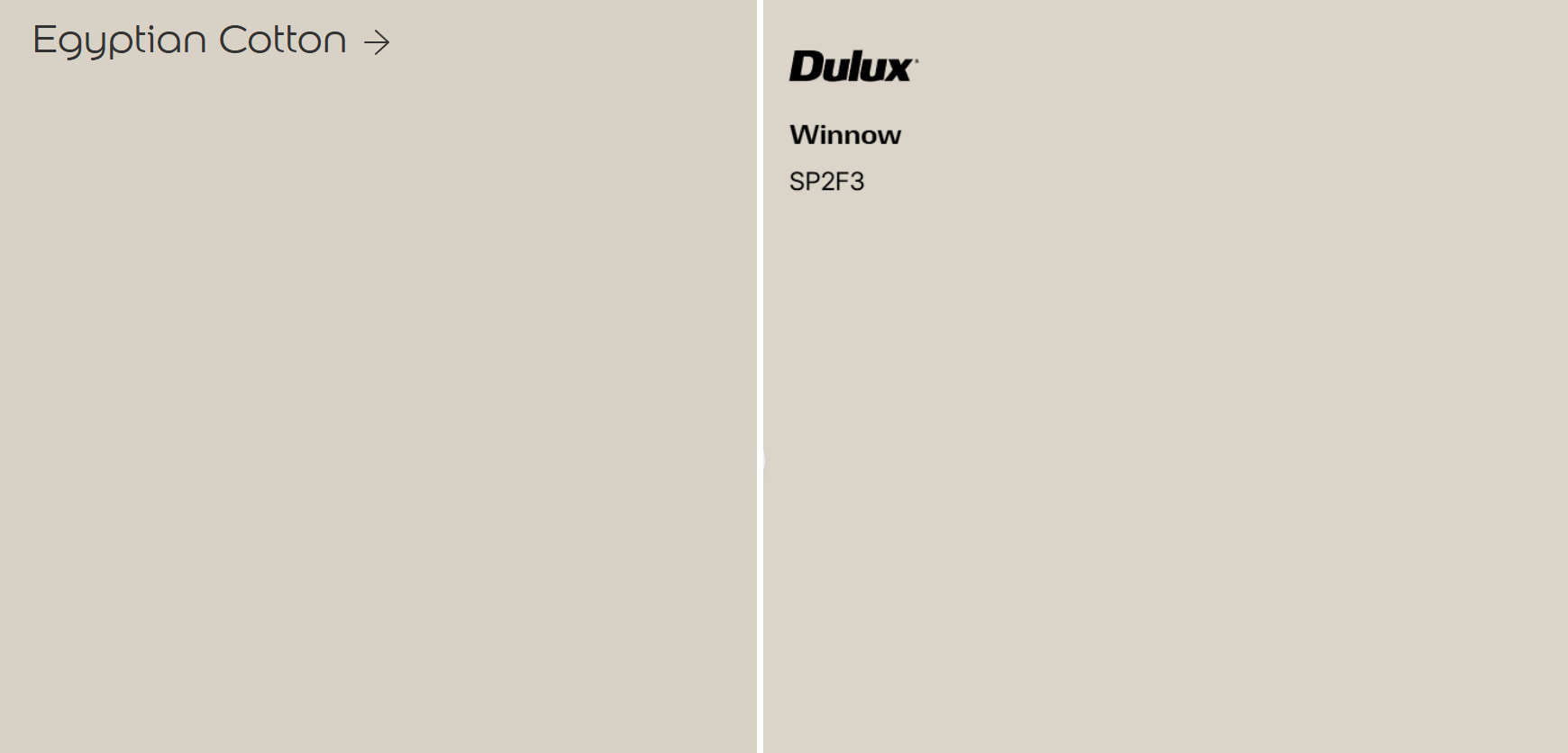 I've contacted our in-store team and Dulux, but it doesn't appear that we have a colour called Egyptian Cotton that has been made available here, nor do we have a colour formulation for it. However, I've had Dulux analyse the colour chip and RGB values, and the closest colour in their range should be Dulux Winnow.