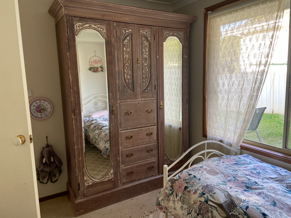 We needed more storage for our daughter's bedroom, and as soon as I saw this whimsical vintage wardrobe on facebook marketplace, I immediately thought of The Lion the Witch and the Wardrobe!