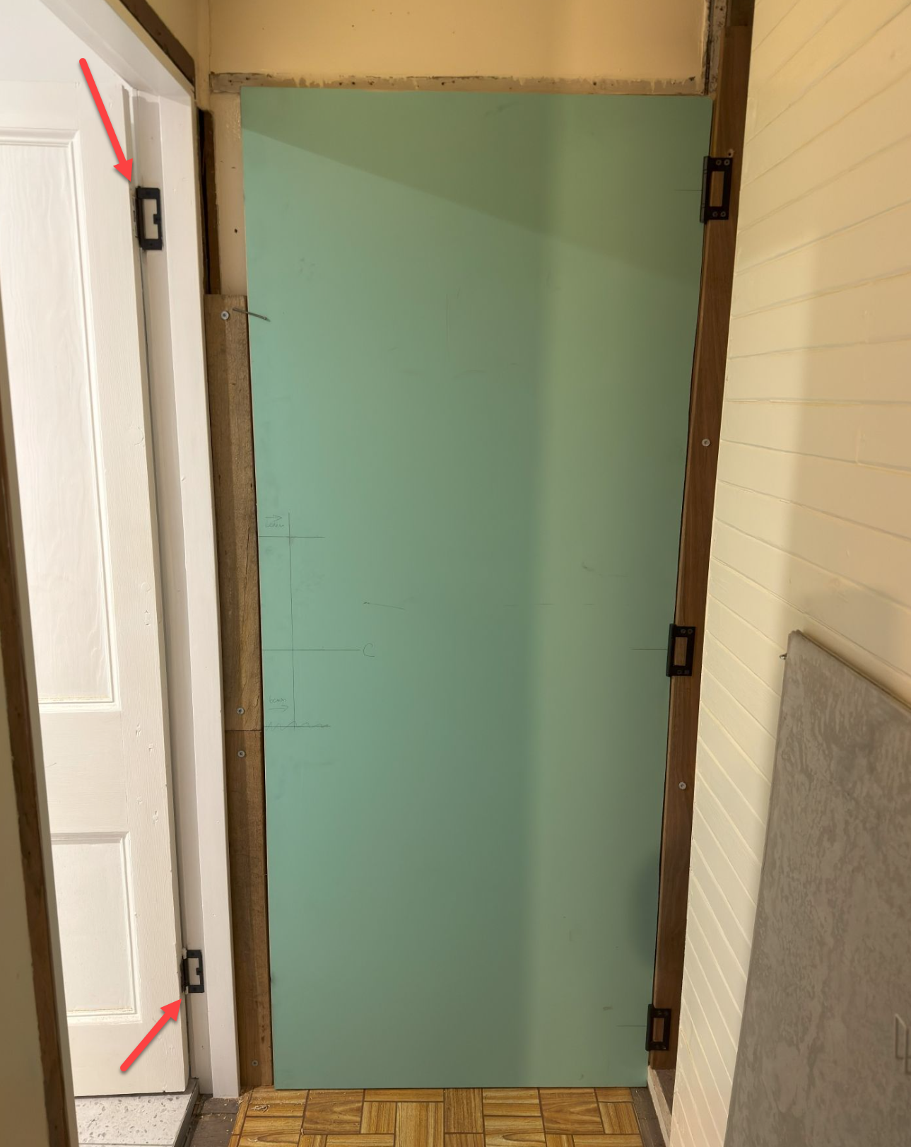 There is certainly an art to hanging a door, especially when you are retrofitting one to an opening. Getting the spacing around the door and the shadow line perfect can be tricky.