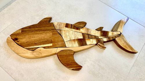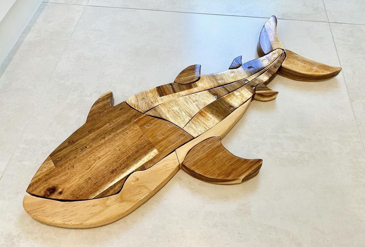 This timber whale artwork is absolutely stunning! The way the natural grain and varying tones of the wood pieces come together adds so much depth and character. The craftsmanship is impressive, with each piece carefully shaped to create a smooth, flowing form that truly captures the essence of a whale. The mix of polished finishes enhances the organic feel, making it a beautiful example of upcycling timber offcuts into something artistic and meaningful. A truly unique and skilfully made piece!