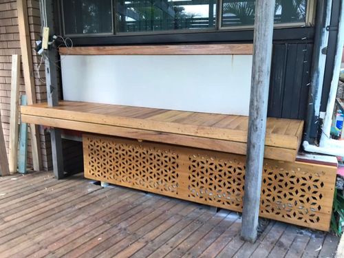 When i built the deck 12 years ago I wanted to install a bench here using the part ledge. Life takes over and it never started. Well Its restarted and ...