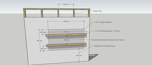 You've purchased a very large TV, but the timber studs are in the wrong location. Mounting the TV bracket on one timber stud is not enough to support ...