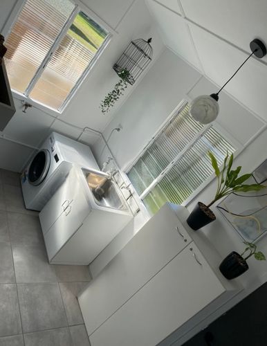 Laundry retrofit makeover to incorporate a new drier and to match a Hamptons aesthetic. The existing cupboards were kept but new hybrid flooring was i ...