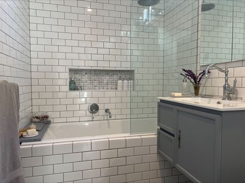 We renovated our ensuite to bring it up to the rest of our house. We had a terracotta and cream tiled space, it was very dated.