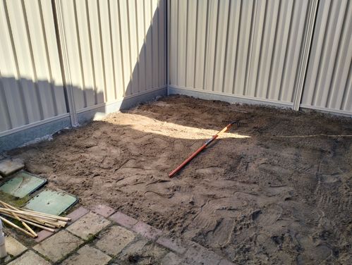 I’m planning to install a garden shed in the area shown in the photo. The space previously had hedge plants, which I’ve now removed.