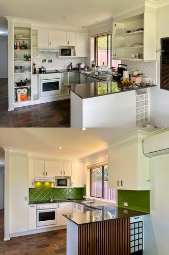 Our home, in an area named Country Road had a very small galley kitchen.The beautiful jarrah cupboards were falling off their hinges, the benchtops we ...