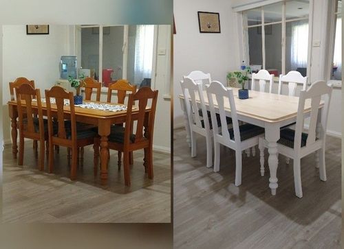 Simple D.I.Y dining room revamp to brighten up our dining room space StepsStep 1Sanded back table and chairs to remove clear coat and imperfections St ...