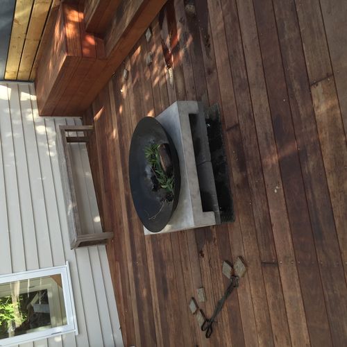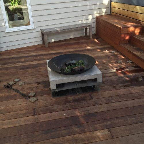 We bought a Cement Grey and Black Machu Fire Pit and decided we wanted to have it on our deck.