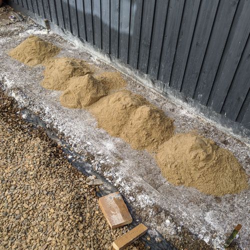 Hi @pats6182 The white stuff is lime. The soil beneath the shed was clayey so I used lime to stabilise the clay and give it a bit of strength. Cement ...