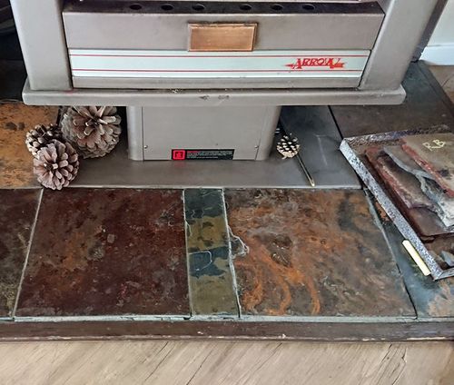 I have a wood burner that sits on a wood board floor with a tile hearth built around it. I have been advised that this is non compliant. The hearth is ...