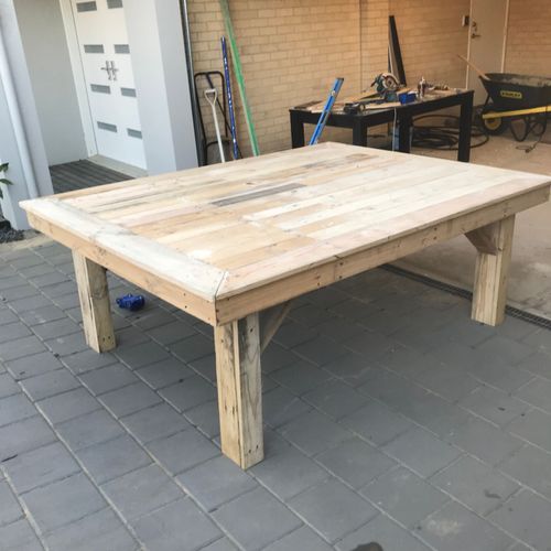 This is my favourite project to date. The size of table is 1.6X2.1 and all made from pallets besides the form work.