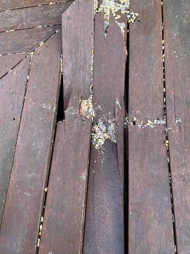 I'm trying to fix this broken decking. New to this work but keen to get it done myself. Can someone suggests details on how I could get this don ...