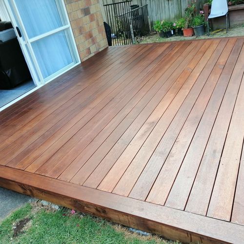 Built a 3M x 4M kwila deck for the back patio.MaterialsKwila decking from Bunnings 150 x 90 unstained.