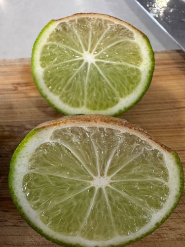 Here are the two limes. There is some flesh bruises but I have been squeezing the fruit so I can imagine this is the reason for the discolor ...