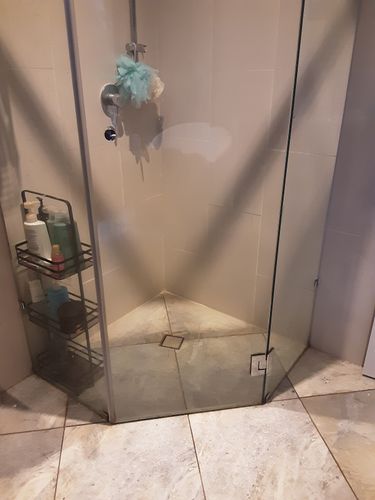 Our shower has no screeded base, just tiles glued to floor, therefore no slope to drain. Screen sits on top of floor however where the door opens, ...