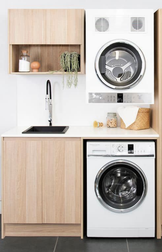 hello @MitchellMc thank you for replying. Yes unfortunately the sliding door has to stay. we could also introduce some shelving above the dryer also ...