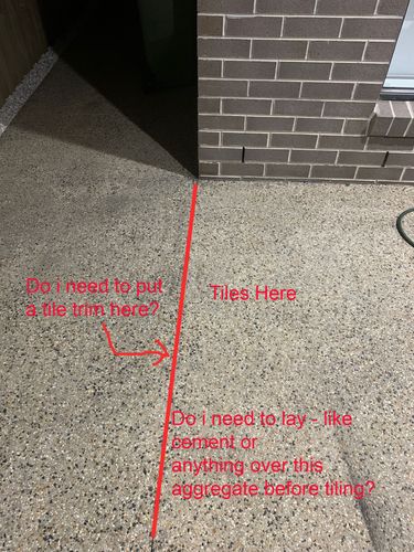 Hi; I am planning to tile my alfresco. currently, it has aggregate concrete. Should i do anything to the aggregate before tiling or can i lay tiles ov ...