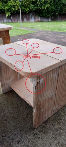 Hi Guys , I made some Garage and Outdoor Tables from left over wood pieces. Mistakenly used woodsash linseed oil putty to fill the gaps to fill the ga ...
