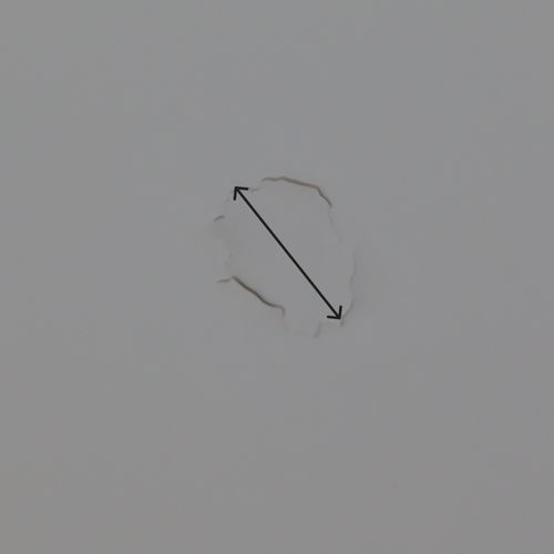 There's a patch on the ceiling (not sure what it is hiding) that looks like it is about to fall out. At its widest point (see arrow in the attach ...