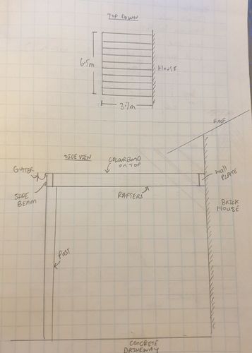 I would like to add a flat roofed (with a small slope) carport to the side of my house. The dimensions are 6.5m long and 3.7m wide. It will be fixed a ...