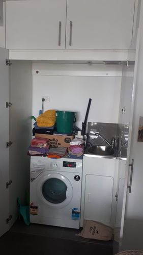 This is my laundry. I live in an apartment and wish to add some shelving or storage, Ive got an idea of what would work.